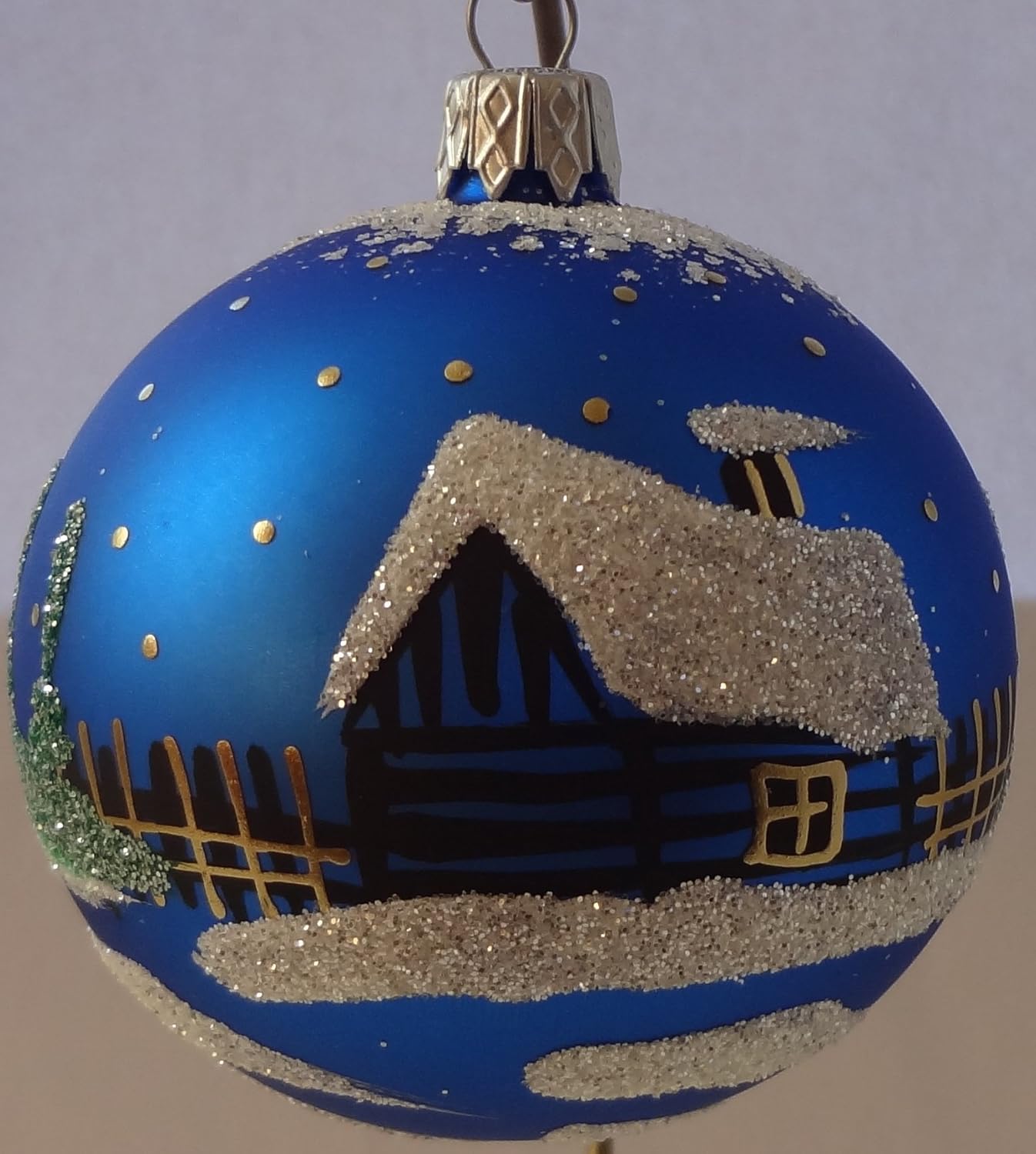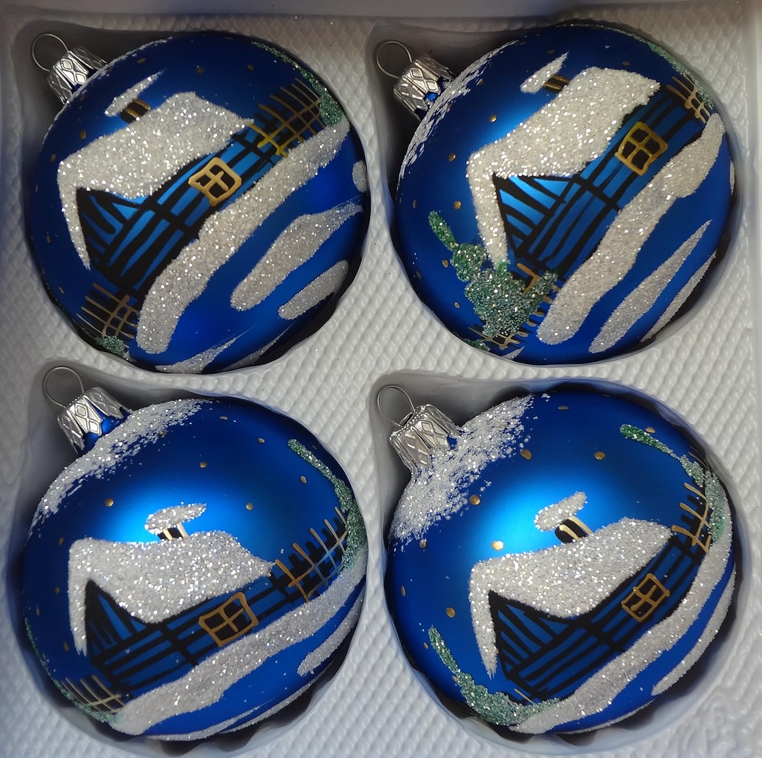 Blaue Weihnachtskugeln Aus Glas Mit Winterlichem Motiv Haus Im Schnee Durchmesser 8 Cm 4er Set Amazon De Kuche Haushalt