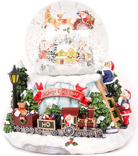 Amazon De Werchristmas Weihnachtsdeko Schneekugel Mit Dorf Und Zugszenerie Und Mit Rotierendem