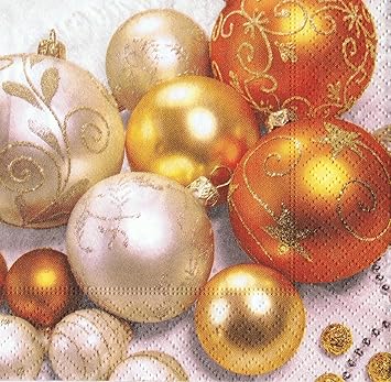 Sparpack 4x 20 Cocktailservietten Weihnachten Weihnachtskugeln Creme Gold 3 Lagig 25x25cm Amazon De Drogerie Korperpflege