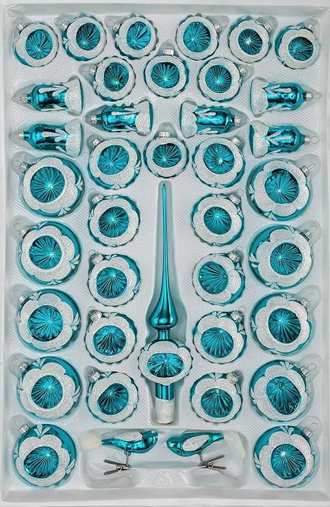 39 Tlg Glas Weihnachtskugeln Set In Hochglanz Vintage Turkis Reflektorkugeln Christbaumkugeln24