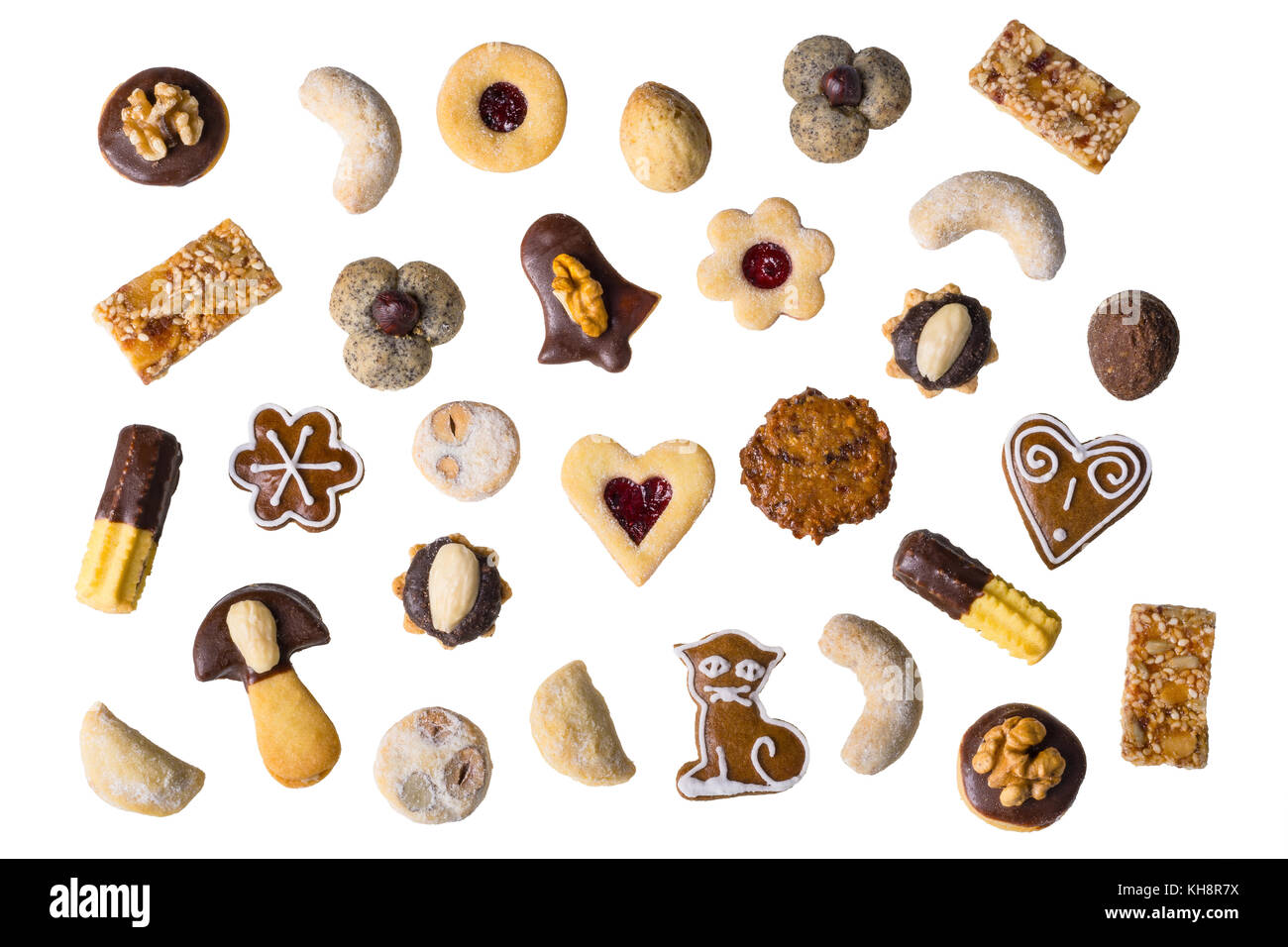 Sammlung Von Traditionelle Hausgemachte Weihnachtsplatzchen Verschiedene Formen Und Arten Von Sussem Geback Auf Weissem Hintergrund Stockfotografie Alamy