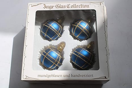 Inge Glas Weihnachtsschmuck Christbaumkugeln Durchmesser Ca 6cm Inhalt 4 Stuck Farbe Transparent Blau Gold Mit Glanz Mundgeblasen Und Handbemalt Kugeln Amazon De Kuche Haushalt