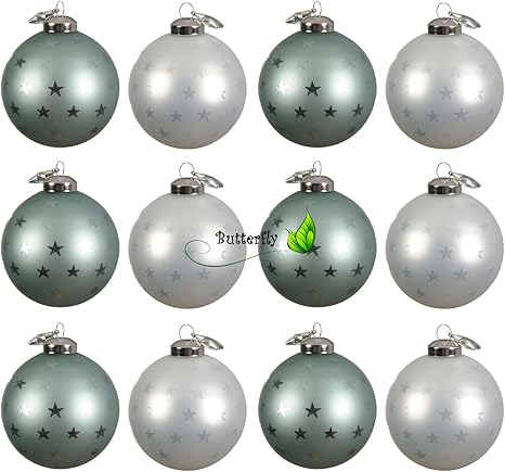 Kae 12 Weihnachtskugeln Glas 8cm Mintgrun Weiss Eukalyptus Christbaumkugeln Motive Sternen 80mm Set Amazon De Kuche Haushalt