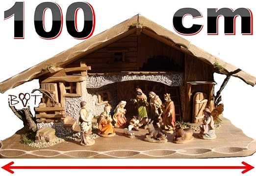 Xxxl Grosse Krippe Weihnachtskrippe Zubehor 100 Cm 1 M Breite Design Massiv Vollholz Massivholz Mit Krippenfiguren In Echtholz Optik Mit Figuren Stall Krippe Krippenstall Ohne Beleuchtung Amazon De Kuche Haushalt