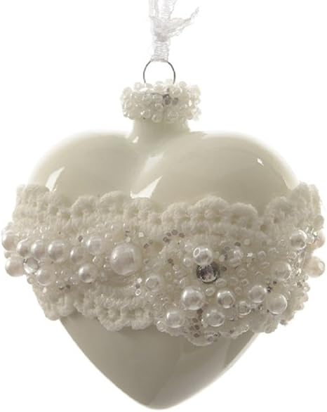 Amazon De Herz Glas Edel Weiss Mit Perlen Glaskugeln Herzformig Weihnachtskugeln Christbaumkugeln